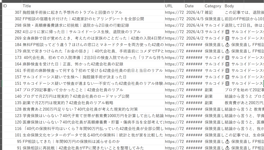 タイトルは覚えていても、URLや投稿日、カテゴリまで管理するのは一苦労。記事数が37本になった私のブログ「40代からの資産再設計」も、そろそろ整理が必要だと感じていました。