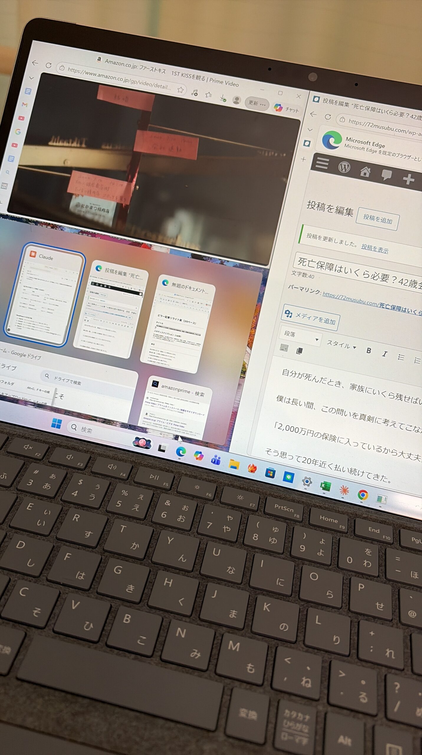 1. パソコン:ブログの編集・動画視聴(primevideo、Youtube)など多岐にわたって大活躍