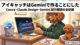 Canva→Gemini→Claude Design→Geminiと試行錯誤したアイキャッチ制作の記録。特定キャラクターの再現にはGeminiが最適と判断した理由と、実際のプロンプトをそのまま公開します。